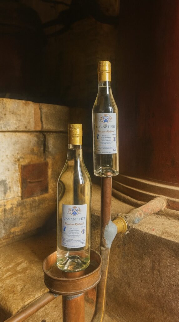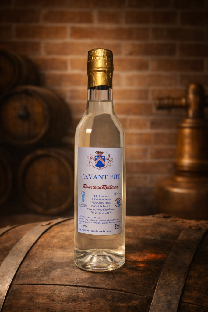 L’Avant Fût est une eau de vie de raisin élaborée selon les standarts charentais. Mis en bouteille avant la mise sous bois et sans réduction, elle présente des arômes fruités et floraux.